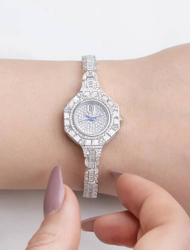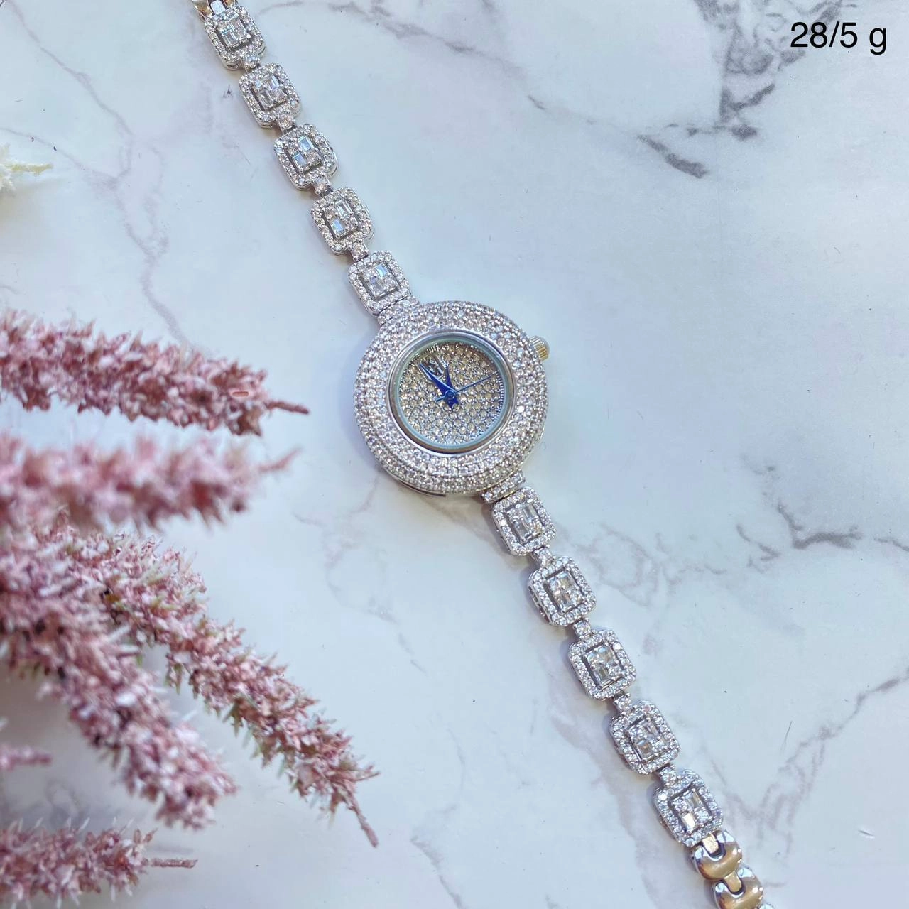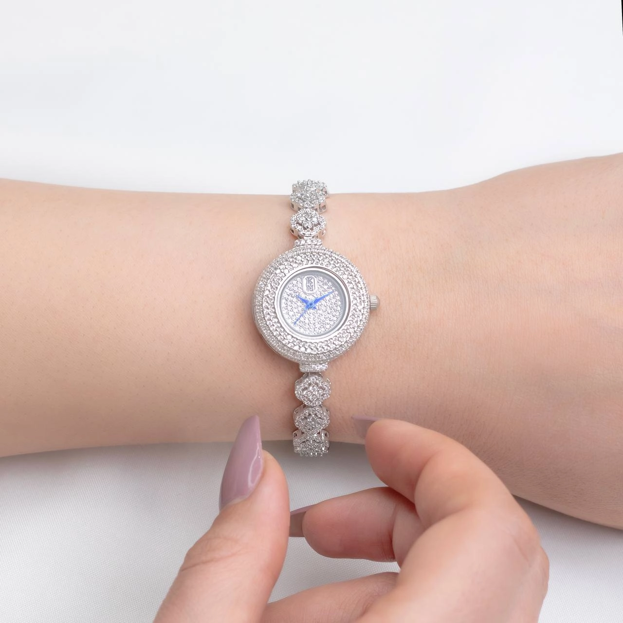 ساعت نقره زنانه فول نگین جواهری ساعت نقره زنانه فول نگین جواهری - 1121