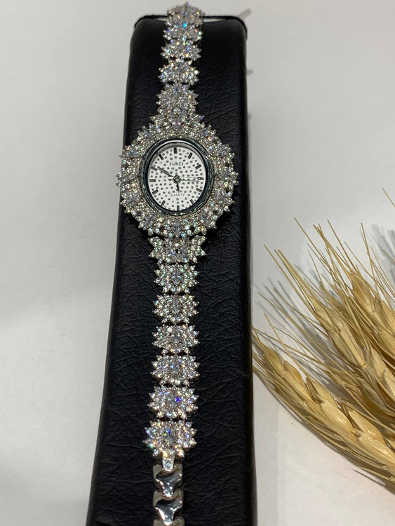ساعت نقره زنانه خوشه ای صفحه بیضی - 1127