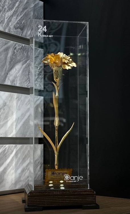 این کار از ترکیب ورق طلا و پایه آن از چوب ساخته شده. استفاده از ورق طلای 24 عیار در این محصول باعث جلا، درخشندگی و ارزش بالای آن شده که به همین منظور رنگ این محصول ثابت است و تغییر رنگ نمیدهد.
