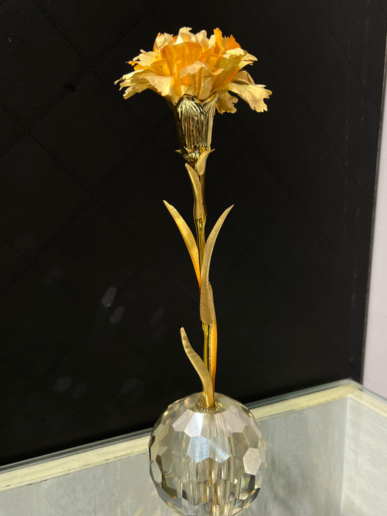 این کار از ترکیب ورق طلا ساخته شده. و گلدان ان کریستال میباشد.