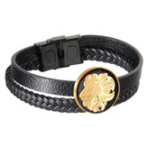 چرم این دستبند از نوع مصنوعی بوده و در دو رنگ مشکی و قهوه ای و با کیفیت بالا قابل سفارش می باشد. نوع بند این دستبند چرم نیز به دو شکل دو دور یا گیس بافت می باشد. قاب پلاک و قفل این دستبند از جنس استیل ضد زنگ و ضد حساسیت و رنگ ثابت می باشد.