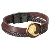 چرم این دستبند از نوع مصنوعی بوده و در دو رنگ مشکی و قهوه ای و با کیفیت بالا قابل سفارش می باشد. نوع بند این دستبند چرم نیز به دو شکل دو دور یا گیس بافت می باشد. قاب پلاک و قفل این دستبند از جنس استیل ضد زنگ و ضد حساسیت و رنگ ثابت می باشد.