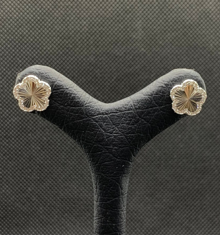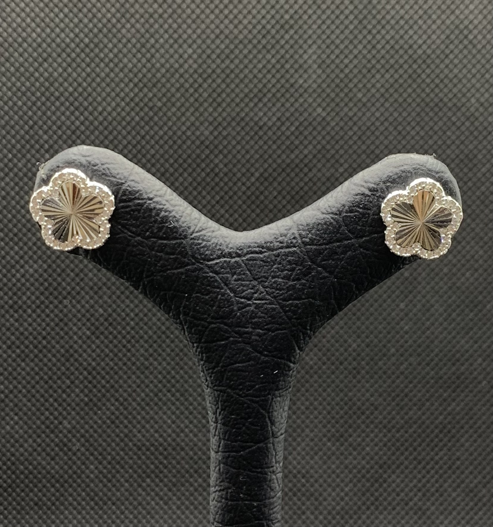 گوشواره نقره زنانه ونکلیف تراش میخی دور نگین.این محصول با آبکاری رودیوم به منظور محافظت و جلا و درخشندگی بیشتر پوشانیده شده است،