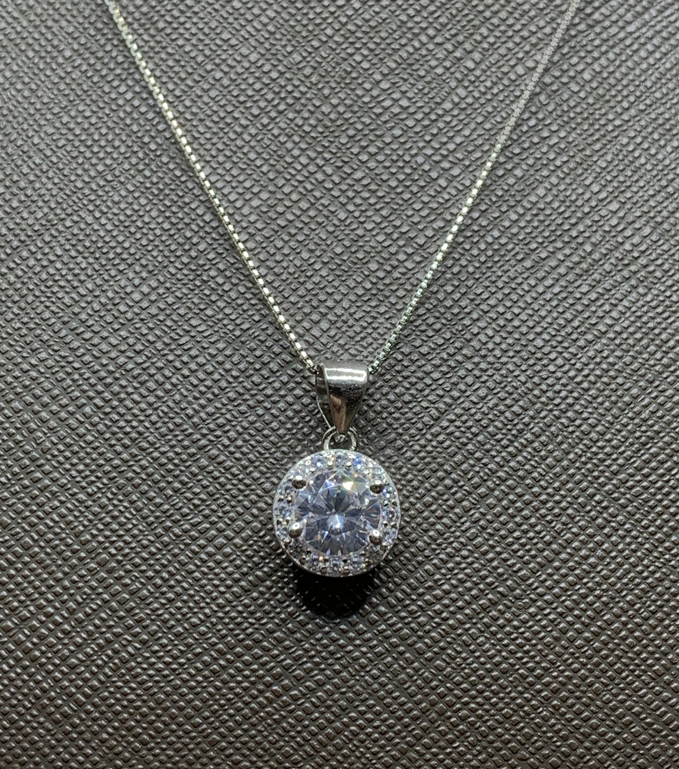 نیم ست نقره زنانه موزانایت گرد دور نگین. این محصول دارای آبکاری رودیوم و طلا سفید است که به همین دلیل ضد حساسیت و رنگ ثابت است.