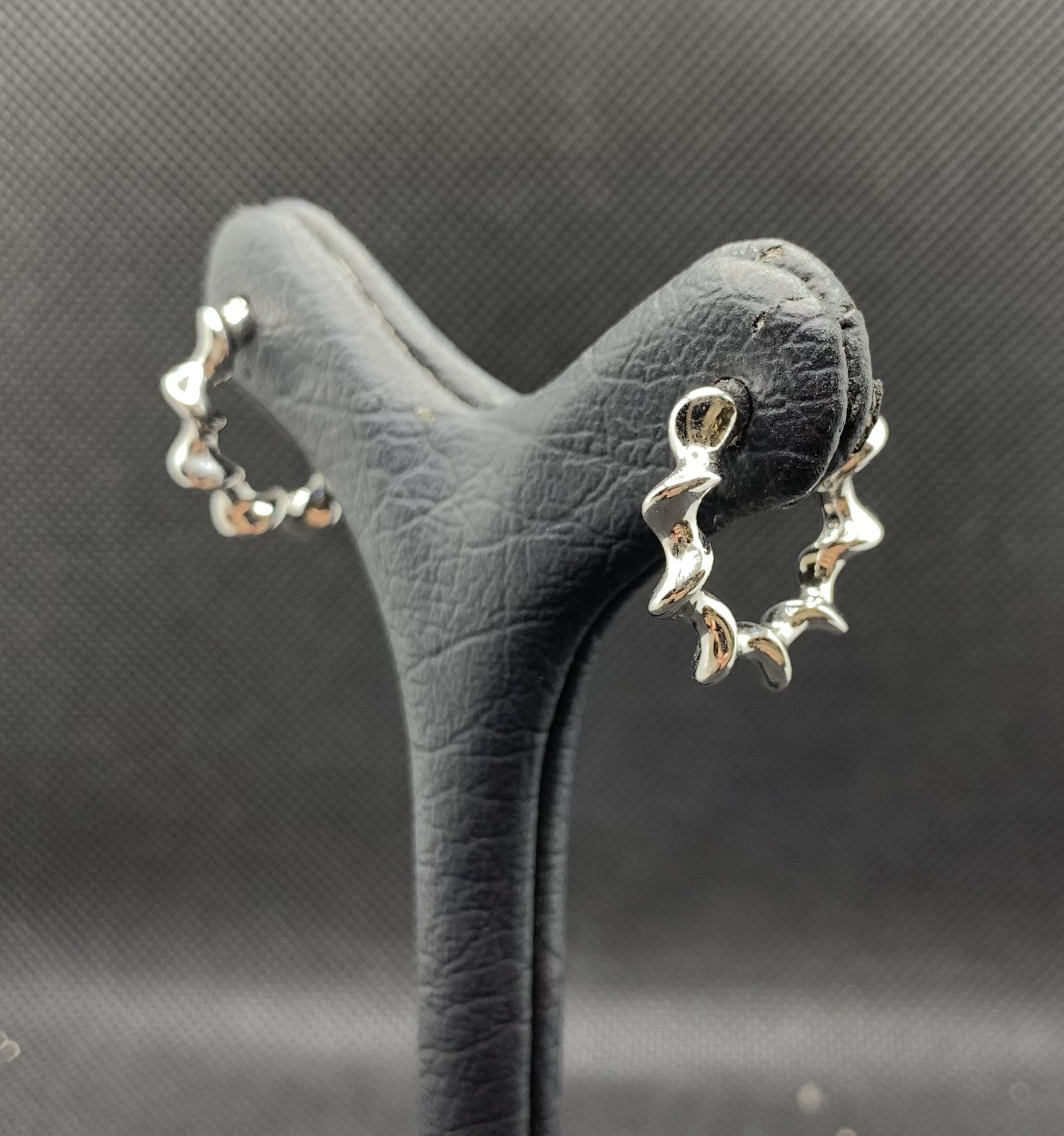 گوشواره نقره زنانه حلقه ای،این محصول با آبکاری رودیوم به منظور محافظت و جلا و درخشندگی بیشتر پوشانیده شده است،