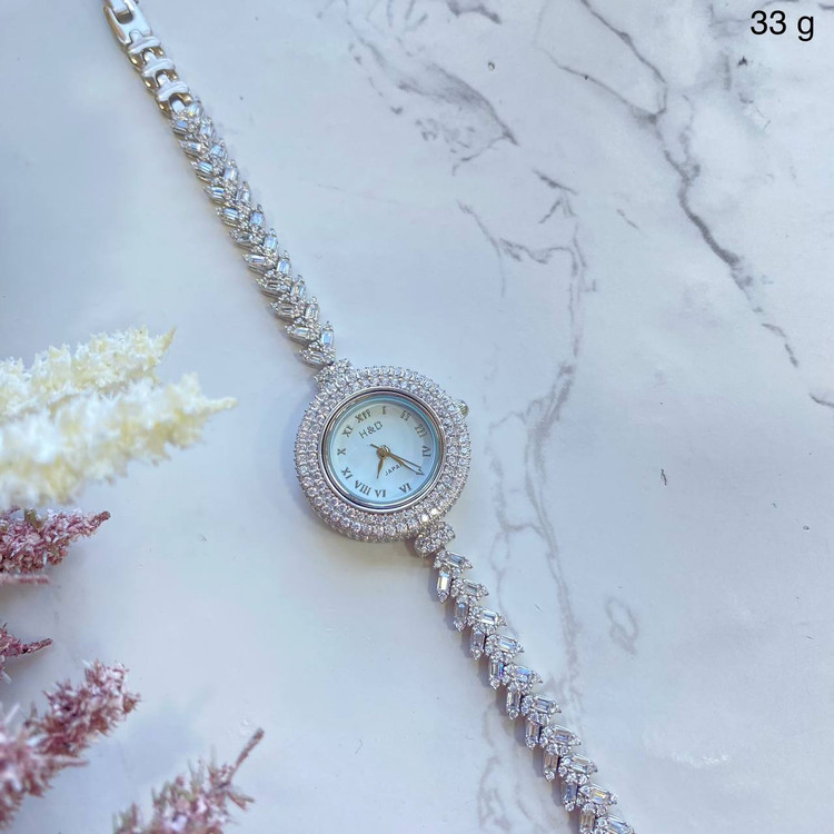 ساعت نقره زنانه نگین باگت خوشه ای - 353