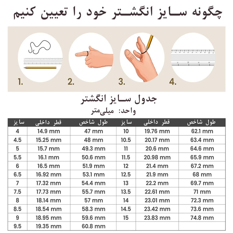 برای دیدن نحوه صحیح سایز انگشتر اینجا کلیک کنید.