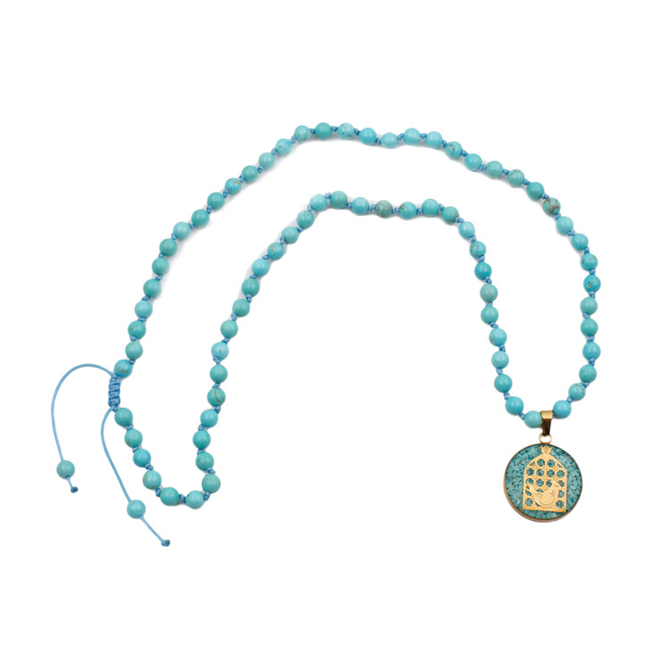 گردنبند سنگ مرغ آمین با طرح مرغ آمین و با استفاده از ورق طلای 24 عیار و سنگ فیروزه ساخته شده است.