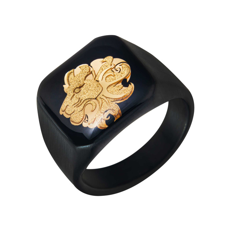 بدنه ی اصلی این انگشتر از جنس استیل ضد حساسیت می باشد . در قسمت زیرین این انگشتر دو گوی از سنگ فلزی تنگستن قرار دارد که به علت خواصی که دارد در آن قسمت قرار گرفته تا در نزدیکی سطح بدن افراد باشد. بر روی این انگشتر طرحی از تاج قرار دارد که از ورق های نازک طلا 24 عیارساخته شده است و روی آن با لایه ای رزین پوشانده شده است.