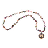 قاب ست پروانه از جنس استیل ضد حساسیت می باشد که دارای رنگ ثابت است. طرح درون این قاب پروانه است که از ورق های نازک طلا 24 عیار ساخته شده اند و بر روی زمینه ای از سنگ تورمالین قرار گرفته است و روی آن برای درخشش و طول عمر بیشتر با یک لایه رزین پوشانده شده است. بند گردنبند پروانه متناسب با سنگ به کار رفته در درون قاب درست شده است.