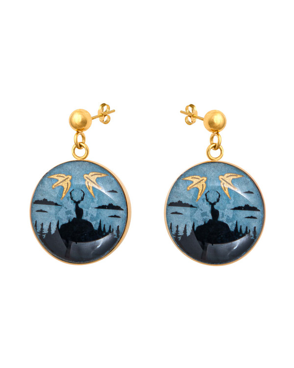 طرح شوکا از ترکیب رنگ مشکی و آبی طراحی شده است. در بالای این طرح آسمان آبی وجود دارد و در پایین طرح نیز یک گوزن با شاخهای دراز با رنگ مشکی طراحی شده است. برای زیبایی بیشتر این قالب دایرهای، دو پرنده کوچک نیز با ورق طلای 24 عیار در بالای آسمان قرار گرفتهاند.