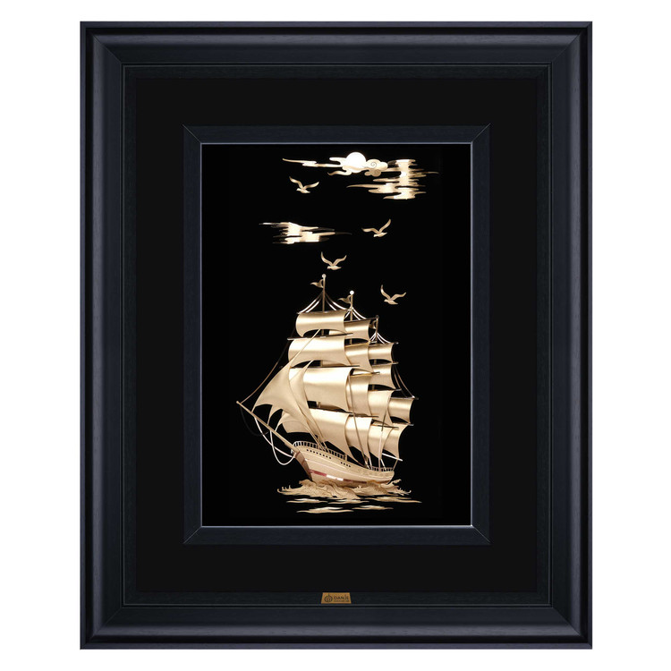 تابلو کشتی چند بادبان عمودی ورق طلا