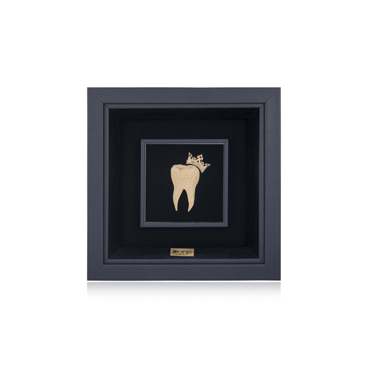 طرح داخلی این تابلو بسیار با ظرافت طراحی شده است. یک دندان کوچک که در بالای آن تاج قرار دارد، زیبایی این تابلو را چندین برابر کرده و آن را مناسب هدیه به دانشجویان دندانپزشکی و دندانپزشکان متخصص تبدیل کرده است. این تابلو دارای قاب PVC است که در برابر رطوبت، ضربه و خط و خش مقاومت خوبی از خود نشان میدهد. به دلیل اینکه شیشه بسیار مقاومی روی تابلو به کار رفته و قاب آن نیز نشکن است، میتوان از نظر عمر مفید این تابلوها با خیالی راحت صحبت کرد.
